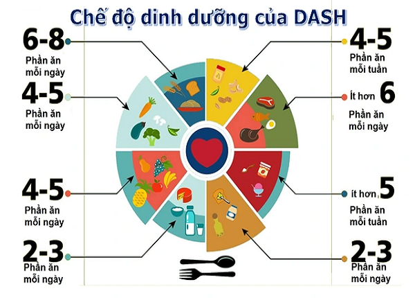 Theo các giảng viên tại Trường Cao đẳng Y Dược Pasteur Chế độ ăn kiêng DASH tập trung vào việc ăn các loại thực phẩm giàu kali, magie và canxi,… giúp kiểm soát huyết áp. Chế độ ăn kiêng DASH hạn chế thực phẩm chứa nhiều natri (muối).
